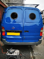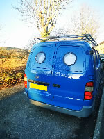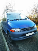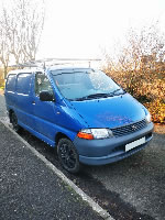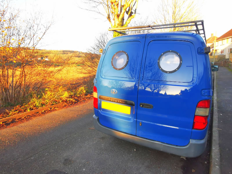 Blue Toyota Hiace short wheel base 2004 with barn doors.